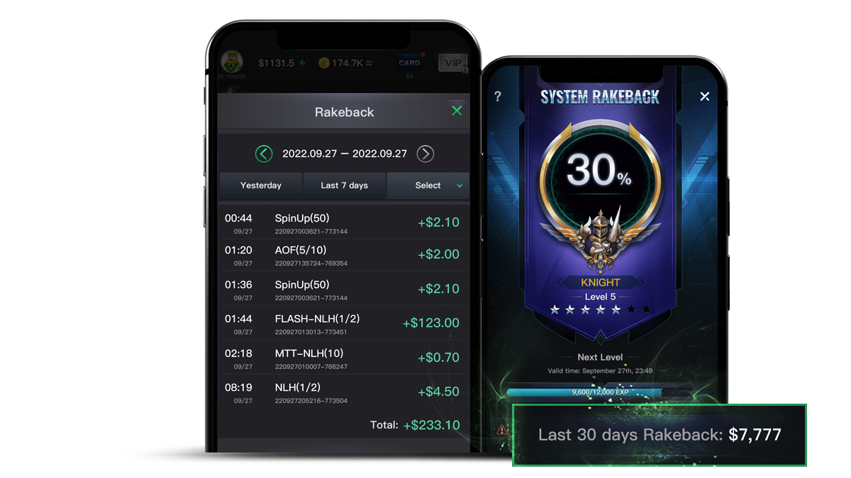 STEP 3: Level up! Rakeback up instantly!